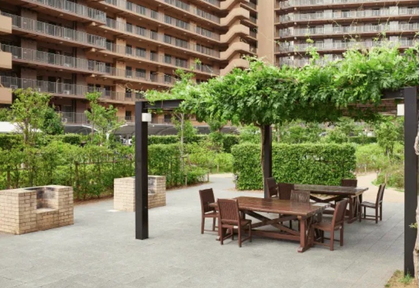 家族や友達とのバーベキューを楽しむためのスペースです。このような集合住宅の敷地内でバーベキューを手軽に楽しめることはなかなかありません。テーブルや椅子が常設され、足りない食材があれば自宅にすぐに取りに帰れる環境はとても便利です。暖かい時期には特に、週末にはバーベキューを楽しむ姿が見られます。災害時にも心強い設備。